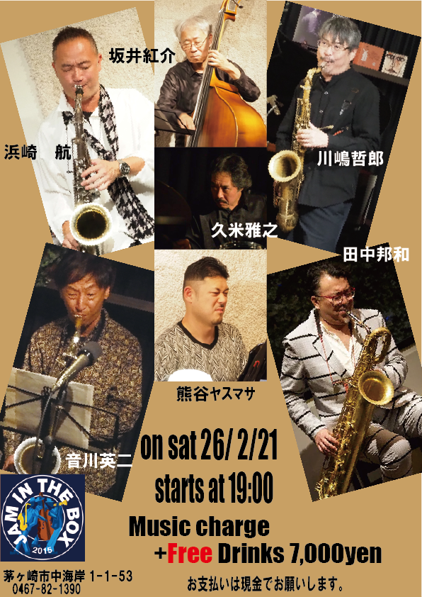 JAM IN THE BOXにて、Four Brothers Sessionです。3TenorとBaritone 3Rhythmの豪華版。